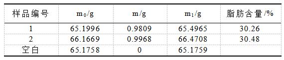 其中,m1──溶劑杯和粗脂肪質量,g;